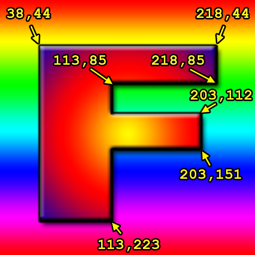 And you can see the coordinates we’re using which are mapping the entire texture to each quad on our ‘F’.